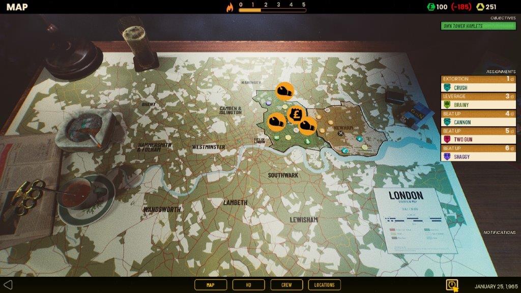 Kao veliki ljubitelj squad based igara, jedva sam čekao neki novi naslov ovakvog tipa. Igra podseća na Phantom Doctrine, mada je manje kompleksan. Igru počinjete kampanjom o kriminalcima, gde je cilj da zauzmete sve delove Londona. Krećete sa pet članova družine i kako se širite na mapi, tako raste i broj vaših saboraca koje možete regrutovati.